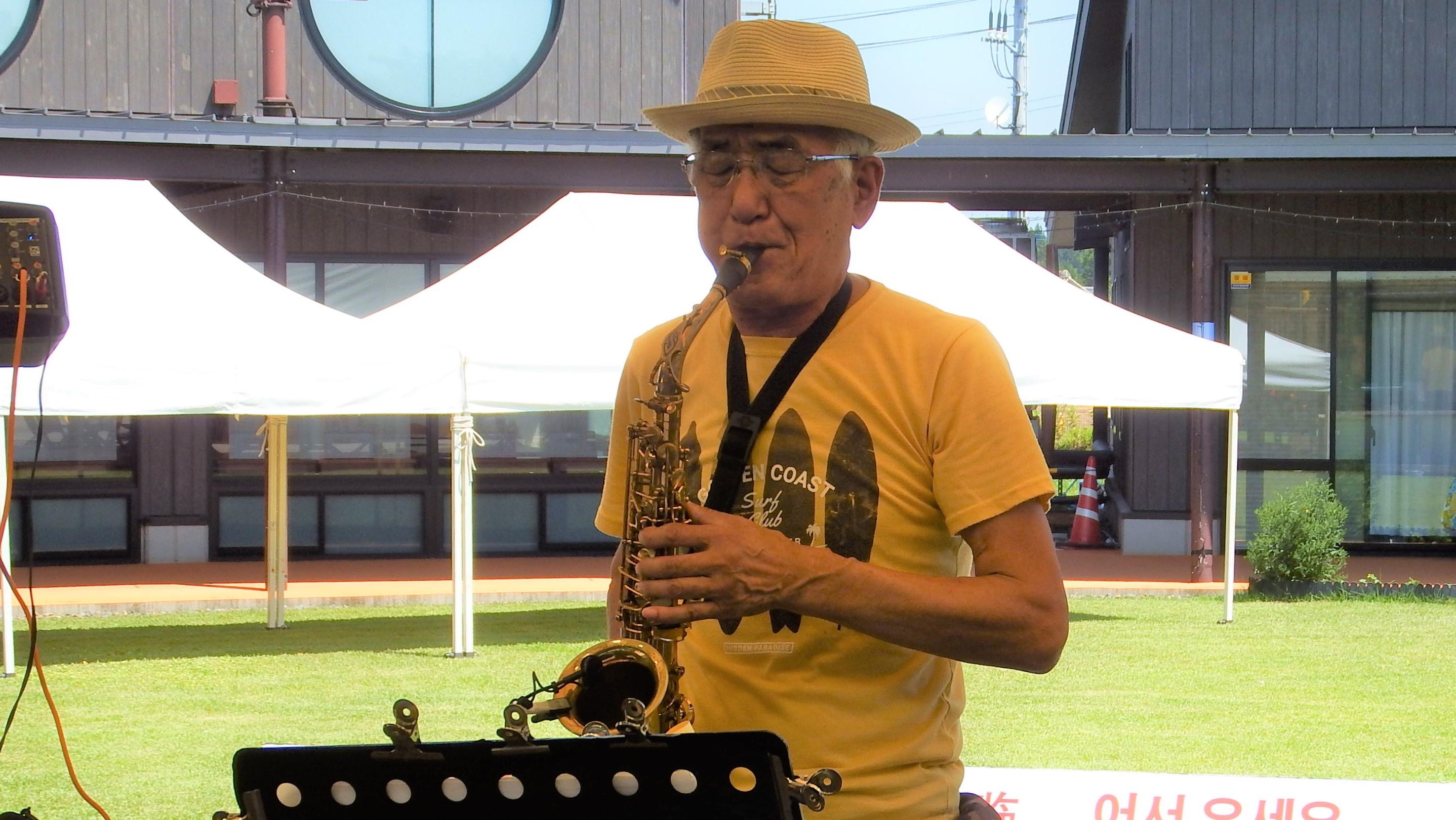 本日のステージイベントは、「チャーリー栗原」各種管楽器によるマラソン演奏です♪
